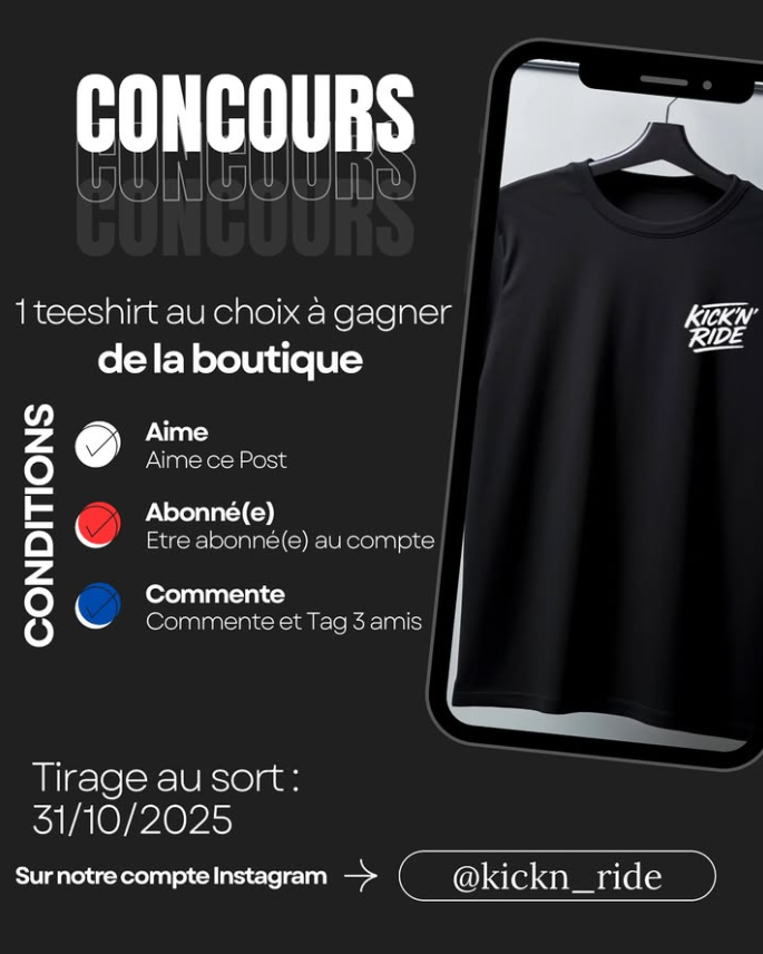 •Dos : Votre nom ou pseudo insta, votre numéro, + logo KICK’N RIDE.